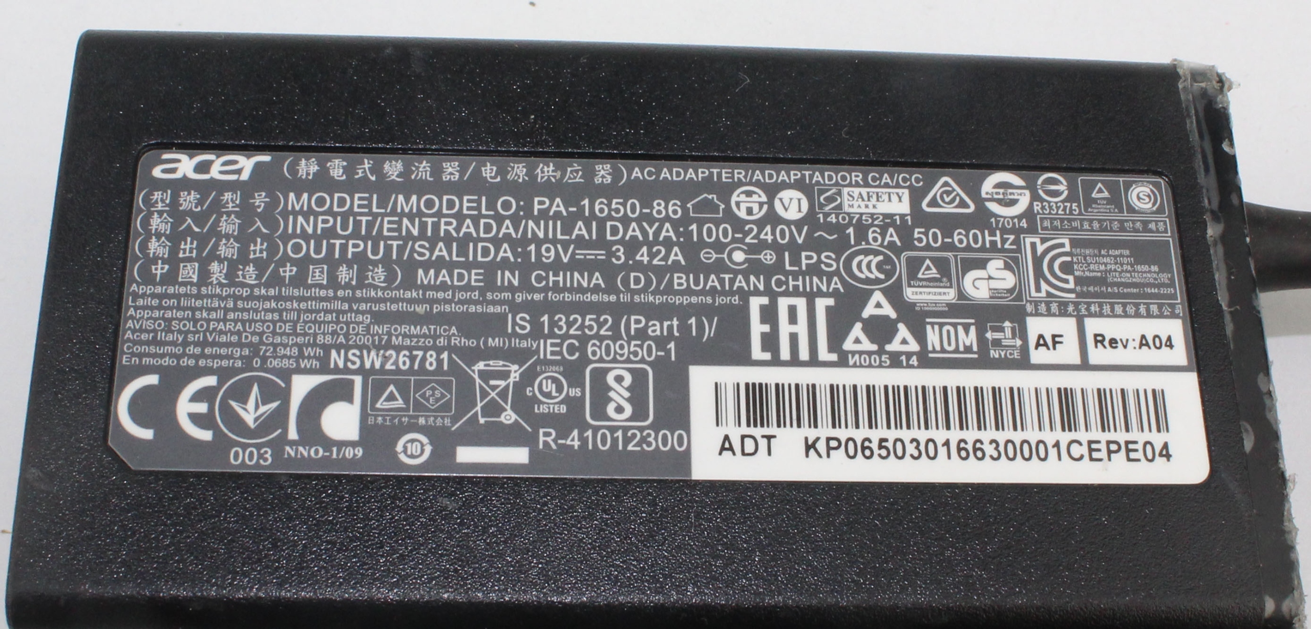 Model: Zasilacz ACER PA-1650-86