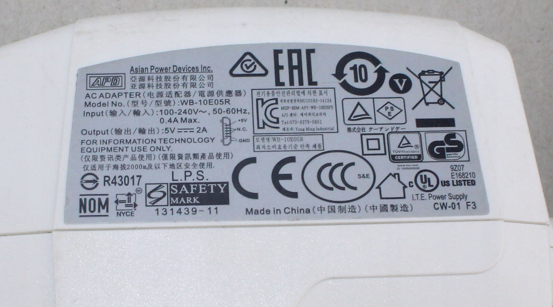 Zasilacz APD WB-10E05R 5V 2A