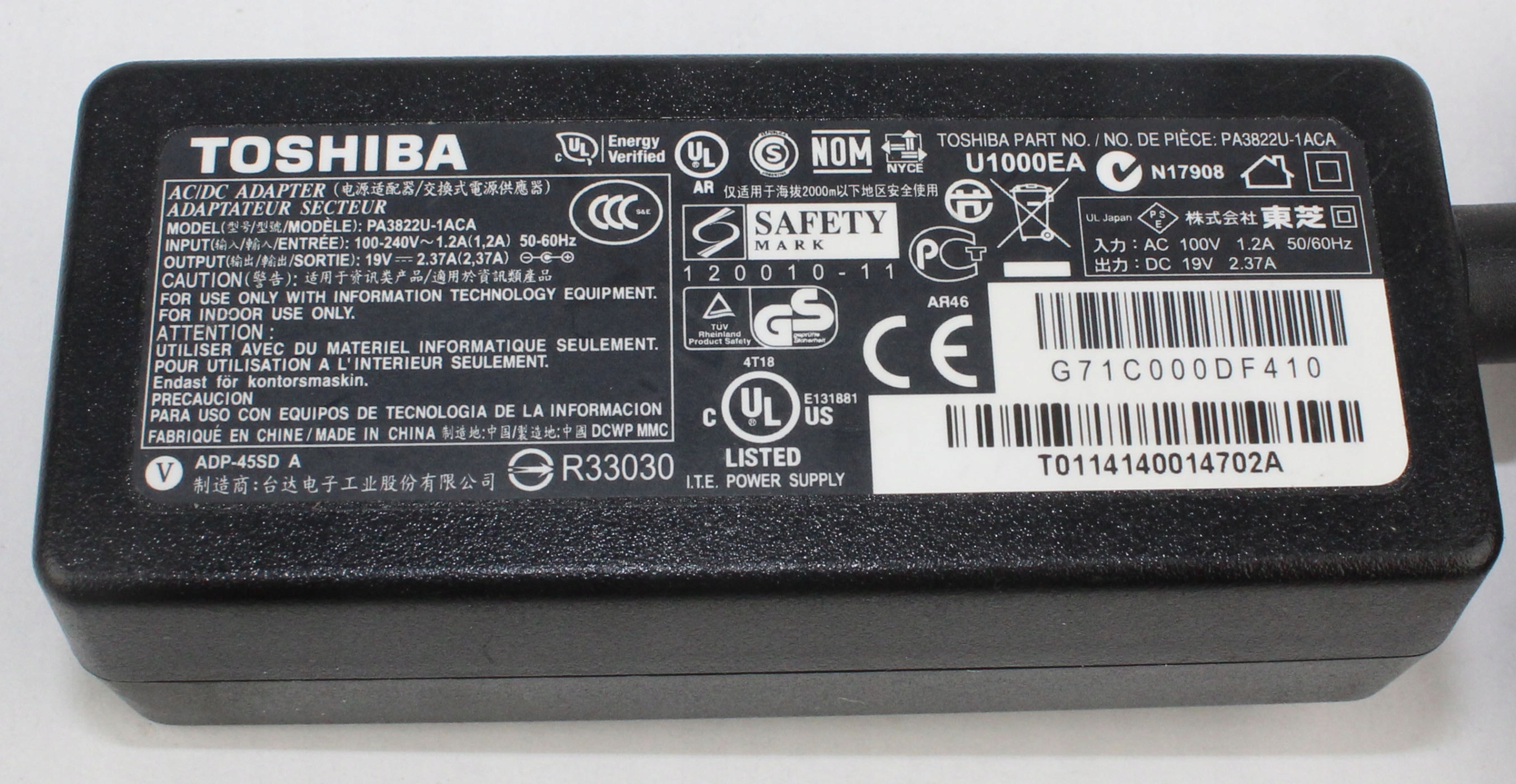 Model: zasilacz TOSHIBA PA3822U-1ACA